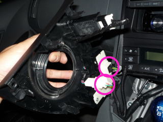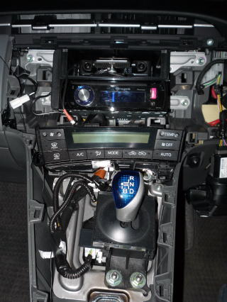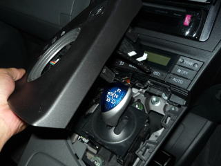 | コネクタが2本繋がっているので無理に引きあげない事。 | この2箇所のカネクタを外します。 | センター全体のパネルを外します。(外さなくても作業は何とか可能です) |
